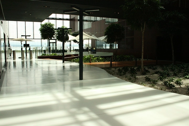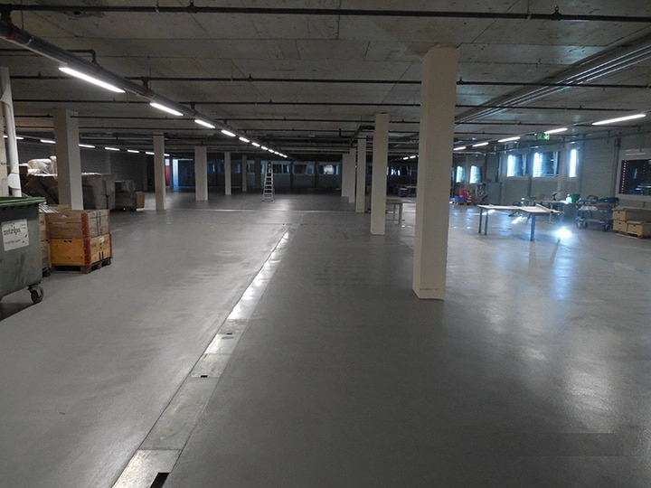 Ateliers : application sur dalles avec correction des niveaux +/- 1mm. Traitement des bords et fosses, raccords aux bords et aux lifts. Marquage de sécurité…