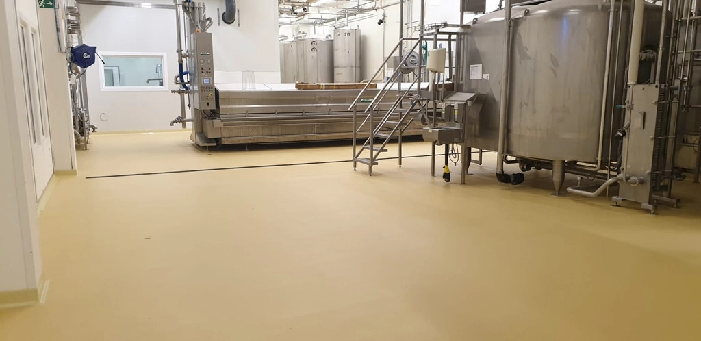 Nouveau revêtement de sol réalisé par Famaflor dans les bâtiments de Bossy, industrie céréalière.